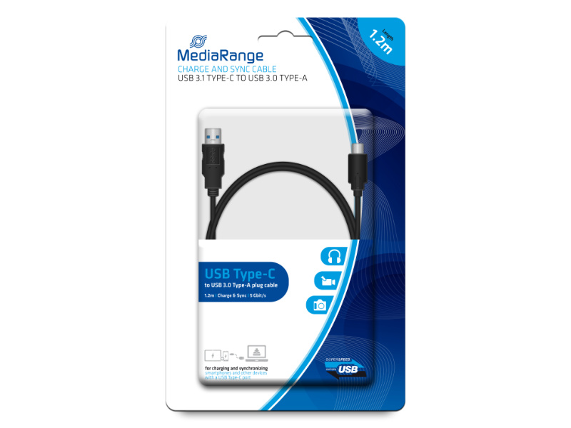 Peryferia i eksploatacjaAkcesoria i EksploatacjaKable i adapteryUSBMediaRange kabel USB-A 3.0 do USB-C 1,2m