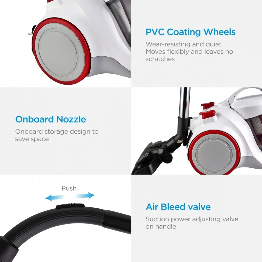 Odkurzacz bezworkowy MIDEA C5 MC01PLWH cechuje się niezwykle lekką konstrukcją oraz kompaktowymi wymiarami. Wyposażony jest w dodatkowe końcówki, które sprawdzą się do sprzątania różnych powierzchni. Specjalny przycisk umożliwia szybkie i bezproblemowe opróżnienie zbiornika.