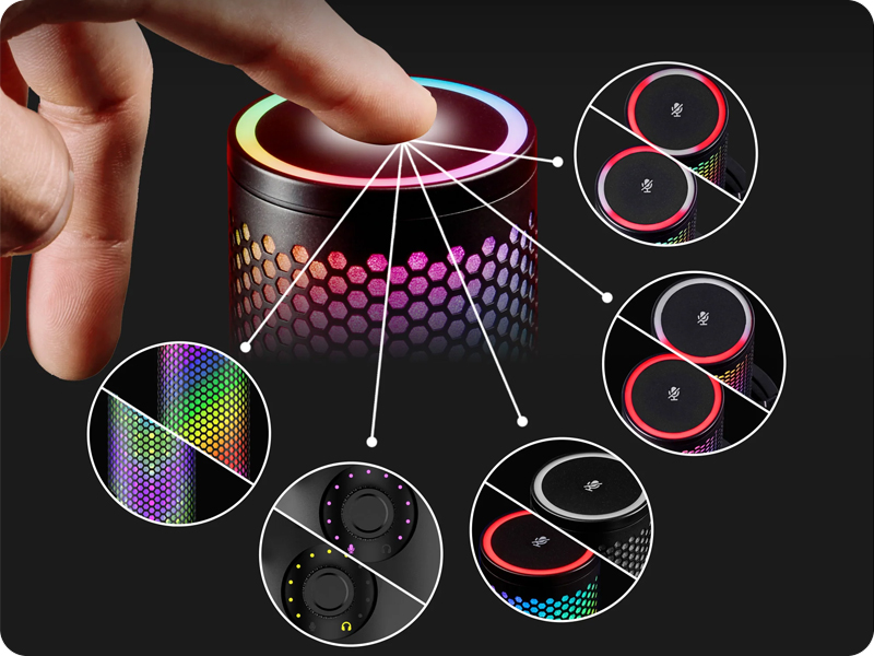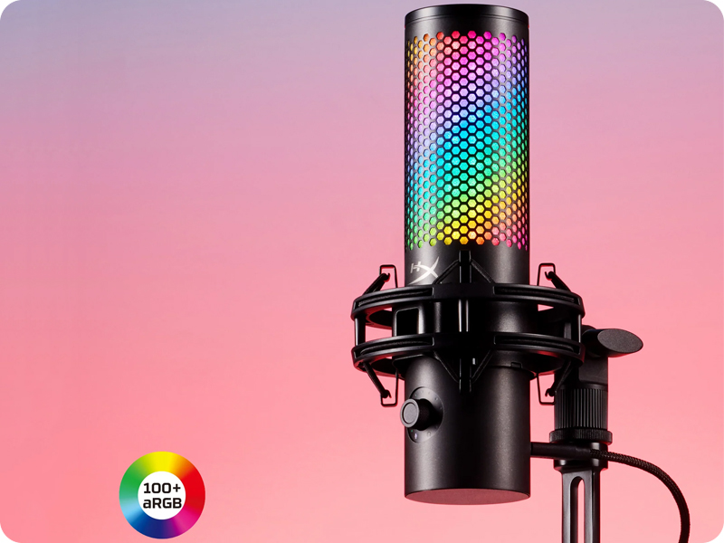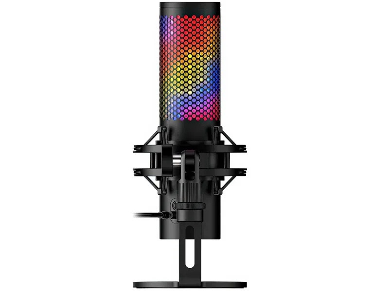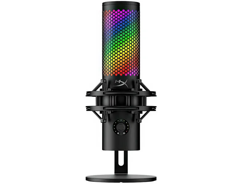 Mikrofon jest zasilany i podłączany przewodowo przez USB typu C, co gwarantuje stabilne i proste połączenie. W zestawie znajduje się statyw biurkowy, a gwinty 3/8" i 5/8" umożliwiają montaż na ramieniu mikrofonowym. Wskaźniki LED oraz podświetlenie RGB nadają mu nowoczesny, atrakcyjny wygląd. Wielofunkcyjne pokrętło pozwala szybko regulować ustawienia bez sięgania do oprogramowania. HyperX QuadCast 2 S to połączenie efektownego designu i praktycznych rozwiązań w jednym urządzeniu.