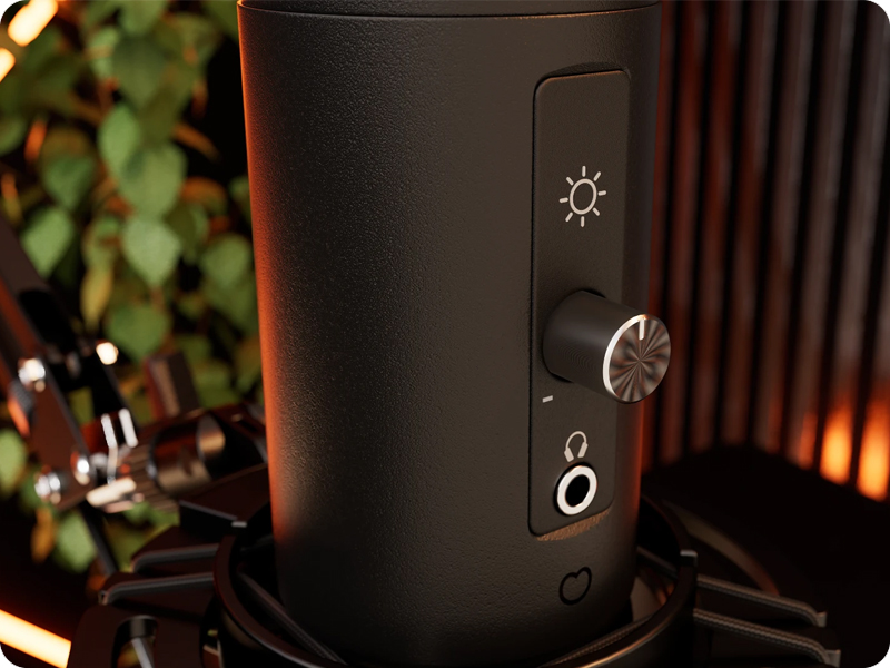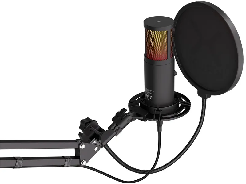 Wbudowany filtr pop Pojemnościowy rodzaj przetwornika Podświetlenie RGB Przełącznik wyciszania mikrofonu Wskaźniki LED Kardioidalna charakterystyka kierunkowości |