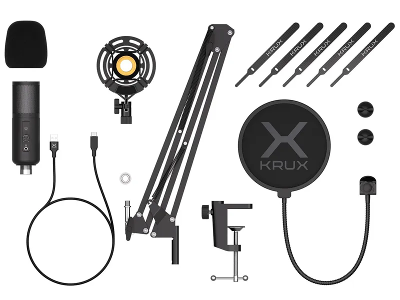 W zestawie z mikrofonem KRUX Edis 3000 znajdziesz ramię mikrofonowe oraz rzepy montażowe, co gwarantuje łatwą i stabilną instalację w dowolnym miejscu na Twoim biurku. Nie musisz już szukać zewnętrznych, często niesprawdzonych rozwiązań – firma KRUX zadbała o to, abyś miał wszystko, czego potrzebujesz od pierwszego użycia. Dzięki temu rozwiązaniu mikrofon będzie zawsze tam, gdzie go potrzebujesz, zapewniając idealne warunki do nagrywania czy streamowania.