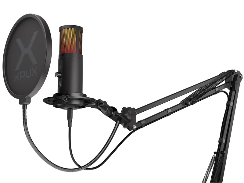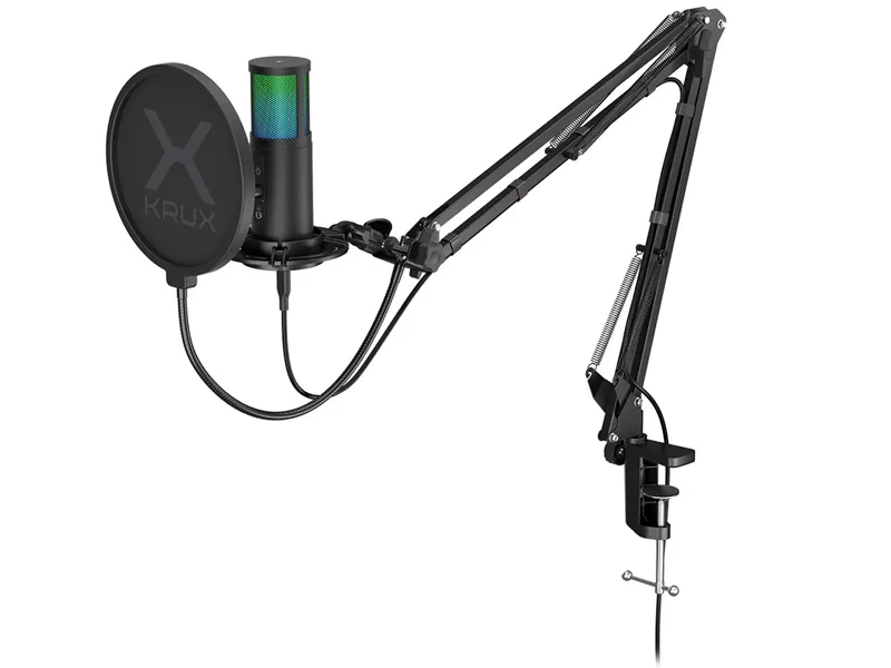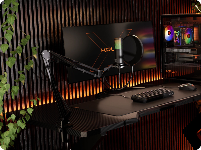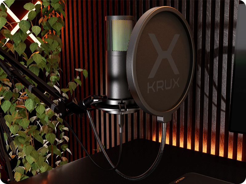 Mikrofon KRUX Edis 3000 nie tylko podnosi jakość Twojego dźwięku na wyższy poziom, ale również wzbogaca estetykę Twojego stanowiska dzięki stylowemu podświetleniu RGB.