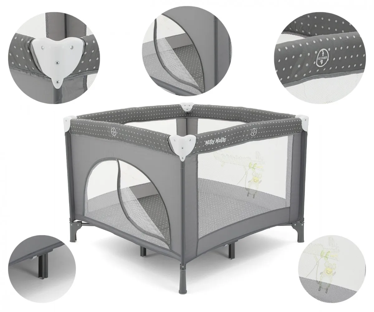 Boki łóżeczka zostały wykonane z mocnej siateczki, która zapewnia odpowiednią cyrkulację powietrza. Ponadto wpływają pozytywnie na poczucie bezpieczeństwa, dziecko podczas zabawy widzi rodziców - zatem spokojnie się bawi, jednocześnie będąc pod nadzorem rodzica.