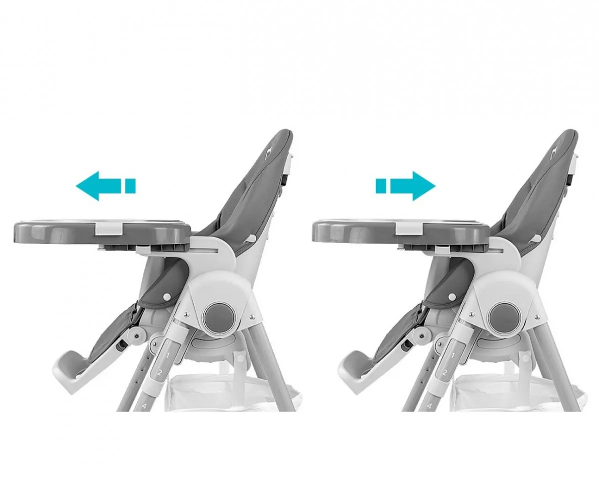 - Może być używane w pozycji leżącej, od 6 miesięcy jako krzesełko wysokie, a później (bez tacki) dosuwane do stołu