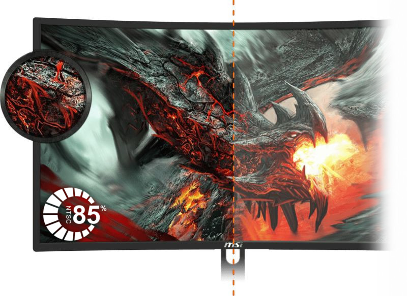 Monitory z serii Optix G241VC korzystają z wysokiej jakości zakrzywionych paneli Samsung, które charakteryzują się wieloma istotnymi dla graczy cechami, pomagającymi im cieszyć się wspaniałym światem gier. W porównaniu z ekranami o zakrzywieniu 4000R lub 3000R, panel o promieniu krzywizny 1800R jest dla oczu najbardziej komfortowym wyświetlaczem, który doskonale nadaje się do większości typowych zastosowań.