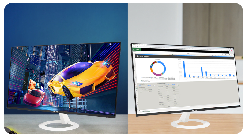 ASUS VZ24EHF-W – monitor gamingowy z Eye Care wyposażony w 23,8-calową matrycę IPS o rozdzielczości Full HD (1920 x 1080), oferujący ultrasmukły profil o grubości zaledwie 6,5 mm w najwęższym miejscu i żywe efekty wizualne. Szybka częstotliwość odświeżania 100 Hz i technologia Adaptive-Sync dla wyeliminowania efektu „tearingu” (rozrywania klatki) i wahań w liczbie klatek animacji wyświetlanych na sekundę, co zapewnia wrażenia z płynnością większą niż kiedykolwiek wcześniej. Jest on również wyposażony w certyfikowane przez TÜV Rheinland technologie Flicker free i Low Blue Light dla zapewnienia komfortowych wrażeń podczas oglądania.