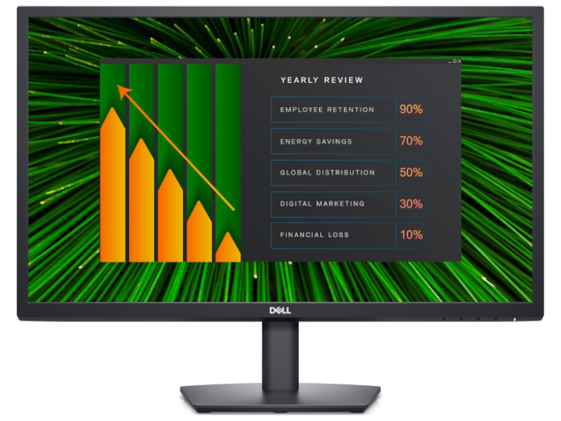 Dell E2423HN gwarantuje wyraźny obraz w doskonałej jakości Full HD przy szerokich kątach widzenia. Dodatkowo imponujący współczynnik kontrastu na poziomie 3000:1 zapewnia głębszą czerń, żywsze kolory oraz jaśniejszą biel. Co więcej ten model monitora został wyposażowy w funkcję eliminującą migotanie, a także w oprogramowanie Dell ComfortView, które ogranicza emisję szkodliwego niebieskiego światła. Monitor został zaprojektowany z myślą o optymalnym komforcie dla Twoich oczu, nawet w przypadku dłuższej pracy przy komputerze.