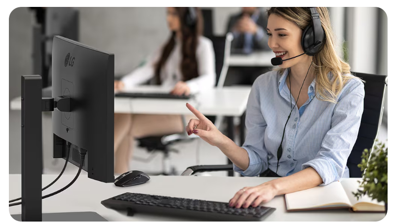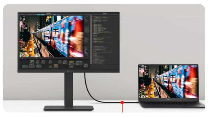 Monitor 24BA750 to idealne rozwiązanie dla osób, które cenią porządek, wygodę i pełną funkcjonalność stanowiska pracy. Wyposażony w szeroką gamę portów, eliminuje problem ograniczonej łączności, pozwalając na łatwe podłączenie wielu urządzeń jednocześnie – od laptopa, przez dyski zewnętrzne, po akcesoria biurowe. Kluczowym elementem jest port USB Type-C™, który umożliwia jednoczesne przesyłanie obrazu, danych oraz zasilanie urządzeń (do 65 W) – wszystko za pomocą jednego kabla. Zapomnij o plątaninie przewodów i ciesz się czystym, efektywnym miejscem pracy, które wspiera Twoją produktywność każdego dnia.