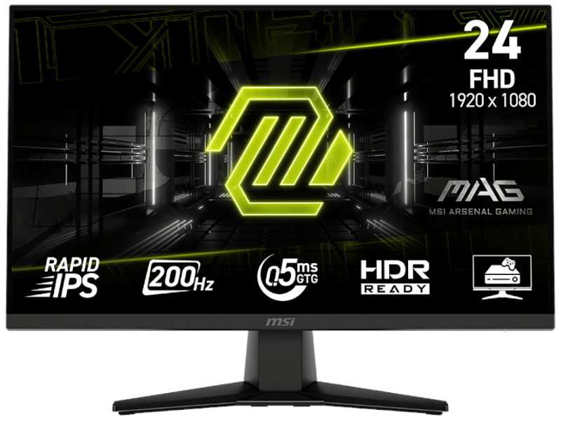 Monitor MSI wyposażony jest w 23,8-calowy ekran o proporcjach ekranu 16:9 i rozdzielczość Full HD 1920 x 1080, która pozwala na jeszcze dokładniejsze odwzorowanie szczegółów podczas grania w najnowsze gry lub w trakcie oglądania filmów lub materiałów wideo. Monitor przenosi nanoszone w grach tekstury, postacie i otoczenie gry na nowy wyższy poziom, zapewniając jeszcze bardziej realistyczne wrażenia.