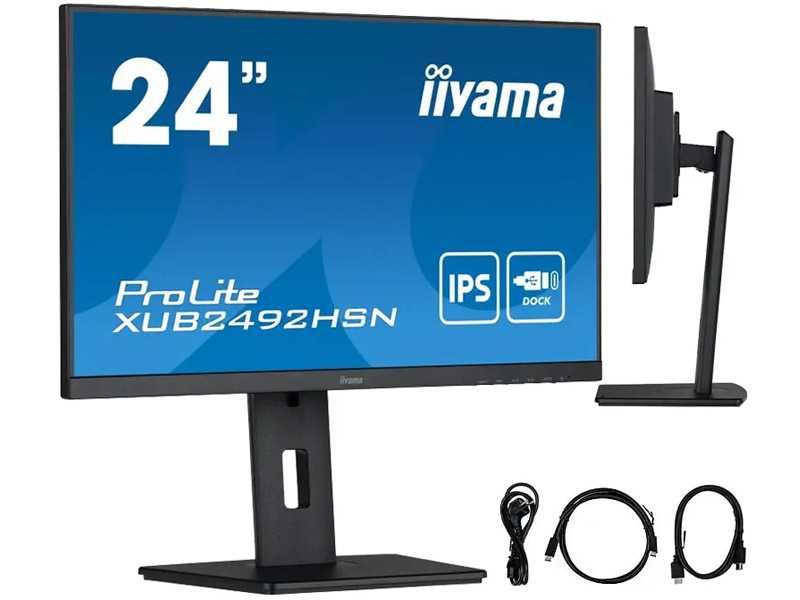 Monitor 24" IIYAMA XUB2492HSN-B5 | IPS | 1920x1080 (FHD) | 75Hz | Slim | USB-C DOCK | Reg. wysokości | Pivot |