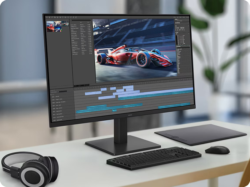 Tryb Eye Saver w monitorze Samsung Essential S3 ogranicza emisję niebieskiego światła, dzięki czemu zmniejsza zmęczenie oczu podczas długiej pracy przy ekranie. Jest szczególnie przydatny wieczorem, ponieważ pomaga zachować naturalny rytm dobowy i komfort widzenia. Technologia Flicker Free eliminuje migotanie obrazu, które często jest niewidoczne gołym okiem, ale negatywnie wpływa na wzrok. Dzięki tym funkcjom monitor zapewnia bezpieczniejsze i bardziej komfortowe użytkowanie na co dzień.