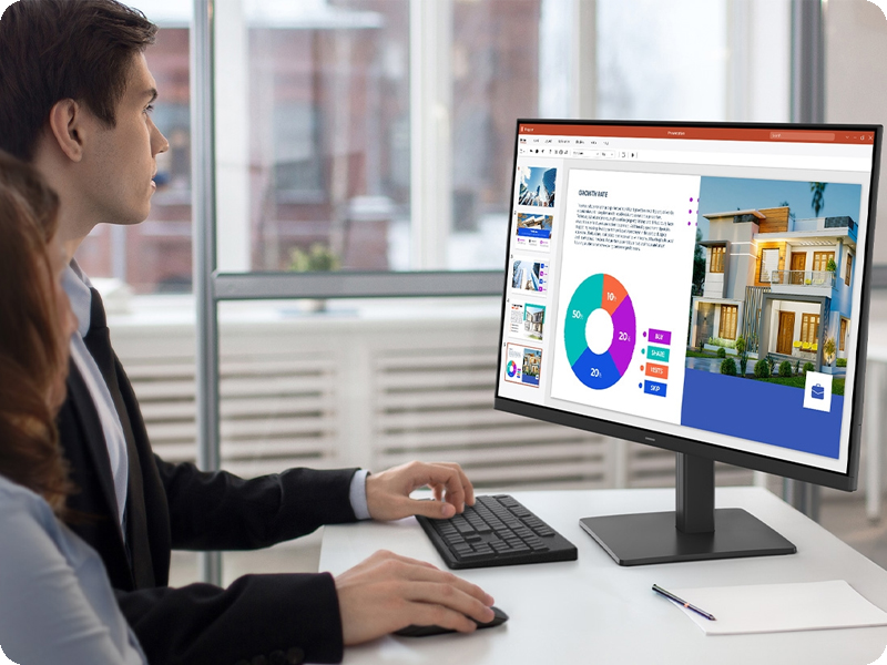 Monitor Samsung Essential S3 LS24F320GAUXEN został wyposażony w matową matrycę IPS, która skutecznie eliminuje refleksy i pozwala skupić się na wyświetlanej treści. Przekątna 24 cale sprawia, że urządzenie jest idealnym wyborem zarówno do pracy, jak i rozrywki. Rozdzielczość 1920 x 1080 (Full HD) gwarantuje ostry i szczegółowy obraz. Dzięki technologii IPS kolory są realistyczne, a kąty widzenia szerokie i stabilne. To świetny wybór dla użytkowników ceniących sobie komfort wizualny i czytelność obrazu.