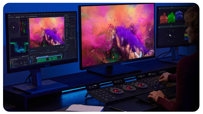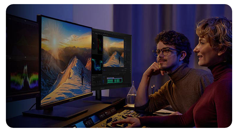 Monitor o ultrawysokiej rozdzielczości z szeroką gamą kolorów to niezbędne narzędzie do produkcji wideo w jakości 4K HDR. Regulowana podstawka i przenośna konstrukcja PA27DCE-K sprawiają, że idealnie nadaje się również do używania podczas sesji na planie zdjęciowym, gdzie można go łatwo przenieść w idealne miejsce lub optymalnie ustawić, aby uniknąć efektu przesunięcia kolorów spowodowanego oświetleniem otoczenia. PA27DCE-K zapewnia wyjątkowo precyzyjne odwzorowanie kolorów, co pozwala wydobyć najdrobniejsze detale wyświetlanych zdjęć lub grafik cyfrowych. Zapewnia niesamowity poziom efektów wizualnych i gwarantuje, że detale kreatywnych dzieł nie zostaną utracone gdzieś na drodze pomiędzy kliknięciem, a drukiem czy produkcją.
