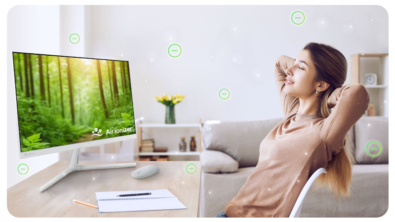 Wbudowany jonizator powietrza sprawia, że ASUS VU279HFI-W dba nie tylko o Twój wzrok, ale także o otoczenie, w którym pracujesz. Usuwając do 90% cząstek kurzu z powietrza, monitor pomaga stworzyć zdrowsze i świeższe środowisko pracy. Dzięki temu możesz cieszyć się większym komfortem na co dzień – oddychasz czystszym powietrzem, a Twoje samopoczucie pozostaje na najwyższym poziomie. To innowacyjne rozwiązanie, które łączy technologię z troską o zdrowie.