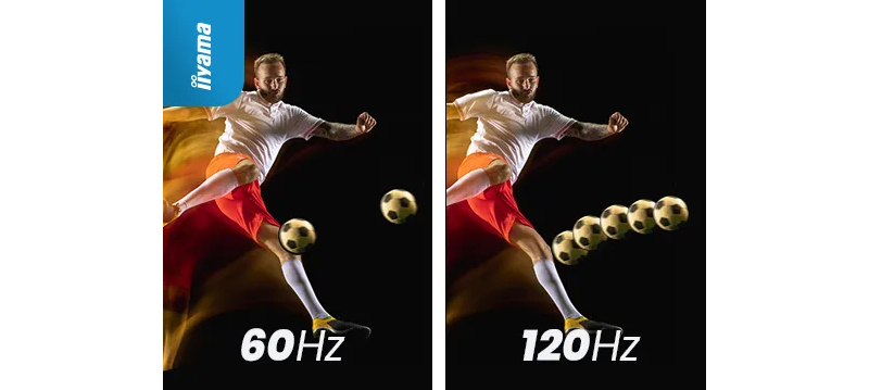Częstotliwość odświeżania 120 Hz przekłada się na lepszą płynność obrazu. Migotanie obrazu jest zredukowane, a zmęczenie oczu jest również mniej odczuwalne. Zwiększona częstotliwość oznacza również łagodniejsze przejścia między kontrastowymi kolorami, płynniejsze sceny ruchu zarówno w filmach, jak i grach, a nawet zmniejszone migotanie kursora myszy.