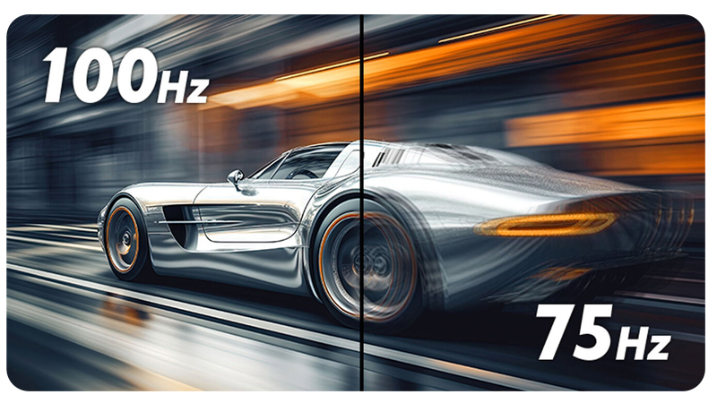 Częstotliwość odświeżania 100 Hz przekłada się na lepszą płynność obrazu. Migotanie obrazu jest zredukowane, a zmęczenie oczu jest również mniej odczuwalne. Zwiększona częstotliwość oznacza również łagodniejsze przejścia między kontrastowymi kolorami, płynniejsze sceny ruchu zarówno w filmach, jak i grach, a nawet zmniejszone migotanie kursora myszy. Dodatkowo Szybki czas reakcji na poziomie 1ms to kwestia kluczowa w każdej rozgrywce. Dzięki niemu obraz pozostaje zawsze ostry, a wrażenia z gry niezapomniane.