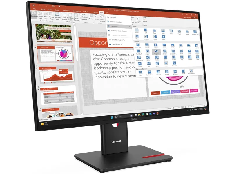 Lenovo ThinkVision T27-40 wyróżnia się też zwiększoną częstotliwością odświeżania - do 120 Hz, co sprawia, że przewijanie dokumentów, poruszanie się w interfejsie czy szybkie akcje na ekranie są dużo bardziej płynne niż na klasycznym 60 Hz. Dodatkowo czas reakcji na poziomie 4 ms znacząco redukuje efekt smużenia, co jest szczególnie ważne przy dynamicznych scenach czy intensywnym przewijaniu treści. Taka konfiguracja przekłada się na bardziej responsywne wrażenia, użytkownik odczuwa wyraźnie płynność i szybkość działania, zarówno przy pracy biurowej, jak i przy przeglądaniu stron czy filmach. W rezultacie praca z monitorem staje się komfortowa, a obraz stabilny nawet przy szybkich ruchach. To udany balans między wymaganiami efektywności a dbałością o komfort użytkownika.
