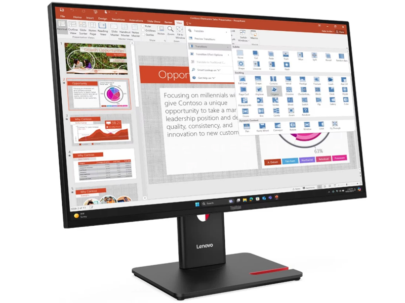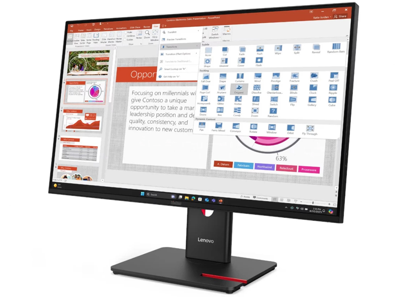 Lenovo ThinkVision T27-40 wyróżnia się też zwiększoną częstotliwością odświeżania - do 120 Hz, co sprawia, że przewijanie dokumentów, poruszanie się w interfejsie czy szybkie akcje na ekranie są dużo bardziej płynne niż na klasycznym 60 Hz. Dodatkowo czas reakcji na poziomie 4 ms znacząco redukuje efekt smużenia, co jest szczególnie ważne przy dynamicznych scenach czy intensywnym przewijaniu treści. Taka konfiguracja przekłada się na bardziej responsywne wrażenia, użytkownik odczuwa wyraźnie płynność i szybkość działania, zarówno przy pracy biurowej, jak i przy przeglądaniu stron czy filmach. W rezultacie praca z monitorem staje się komfortowa, a obraz stabilny nawet przy szybkich ruchach. To udany balans między wymaganiami efektywności a dbałością o komfort użytkownika.
