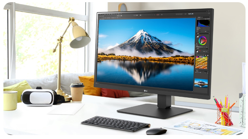 Monitor możesz dostosować do swoich potrzeb na 4 różne sposoby. Możesz odchylić go do góry lub do dołu. Jeśli chcesz pokazać coś komuś na monitorze, to możesz go obrócić w prawo lub lewo. Potrzebujesz więcej przestrzeni? Zmień położenie monitora z poziomej w pionową dzięki funkcji pivot. A może potrzebujesz podnieść monitor, aby znajdował się faktycznie na wysokości Twoich oczu? Nic trudnego, LG 27BA45U-B posiada funkcję dostosowania wysokości. Wspiera on również standard VESA, dzięki czemu w łatwy i szybki sposób zamontujesz monitor na ścianie w domu lub biurze.