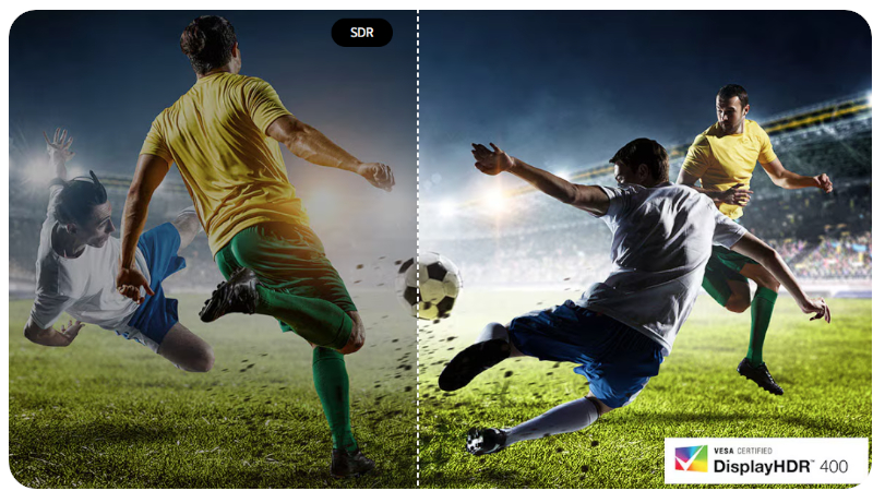 Monitor obsługuje standard VESA DisplayHDR™ 400, oferując szeroki zakres jasności i kontrastu, dzięki czemu każda scena nabiera głębi i realizmu. Zanurz się w niezwykle dynamicznym obrazie, który oddaje pełnię szczegółów w najnowszych grach, filmach i zdjęciach HDR. Matryca IPS z pokryciem 95% przestrzeni barw DCI-P3 gwarantuje wyjątkową precyzję kolorów oraz szerokie kąty widzenia, dzięki czemu możesz cieszyć się wiernym odwzorowaniem barw i żywymi, realistycznymi scenami niezależnie od miejsca, z którego patrzysz. To doskonały wybór dla miłośników rozrywki, którzy oczekują najwyższej jakości obrazu i pełnego zanurzenia w wirtualnym świecie.