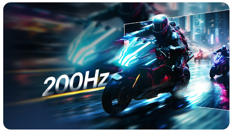 Częstotliwość odświeżania 200 Hz gwarantuje wyjątkowo płynny i krystalicznie czysty obraz, znacząco redukując rozmycie ruchu nawet w najbardziej dynamicznych scenach. Każda klatka jest wyświetlana z najwyższą precyzją, pozwalając w pełni zanurzyć się w intensywnej rozgrywce i reagować szybciej niż przeciwnicy. Dodatkowo ultraszybki czas reakcji 1 ms (GtG) minimalizuje efekt odwrotnego ghostingu, zapewniając wyraźne kontury i maksymalną ostrość obrazu. To zupełnie nowy poziom wydajności, który przekłada się na przewagę w grach i niezrównane wrażenia wizualne podczas każdej sesji gamingowej.