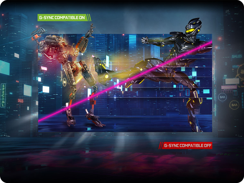 Zapomnij o efekcie rozdartej klatki, który negatywnie wpływa na Twoją precyzję i doświadczenia w grze. Dzięki obsłudze technologii G-Sync każda rozgrywka będzie doskonale płynna. Funkcja ta polega na zgraniu pracy monitora z kartą graficzną dając Ci pewność, że nowa klatka jest wyświetlana na monitorze wtedy, kiedy wyrenderuje ją GPU.