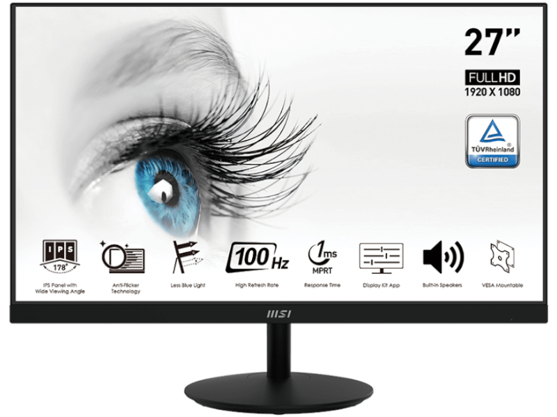 Monitor 27" MSI PRO MP271A | 1920x1080 (FHD) | 100Hz | 1ms | IPS | 16:9 |
