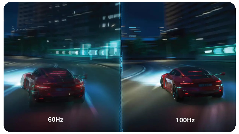 Częstotliwość odświeżania 100 Hz sprawia, że obraz staje się wyjątkowo płynny i przyjemny dla oka. To właśnie dzięki niej dynamiczne sceny — czy to w filmach, grach, czy podczas przewijania treści — wyglądają naturalnie i bez najmniejszych zacięć. Wyższe odświeżanie przekłada się na szybszą reakcję, większą precyzję i wyraźnie lepszy komfort użytkowania. To technologia, która sprawia, że wszystko, co widzisz na ekranie, staje się bardziej dynamiczne, żywe i realistyczne.