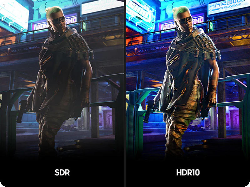 Odyssey G5 obsługuje technologię HDR10, która rozszerza zakres tonalny i pozwala uzyskać bardziej naturalne odwzorowanie jasnych oraz ciemnych scen. Dzięki tej funkcji obraz staje się pełniejszy, z większą głębią i intensywnością barw. Kolory wyglądają bardziej realistycznie, a cienie i światła nabierają szczegółowości. To ogromna przewaga podczas oglądania filmów, grania w gry czy profesjonalnej obróbki grafiki.