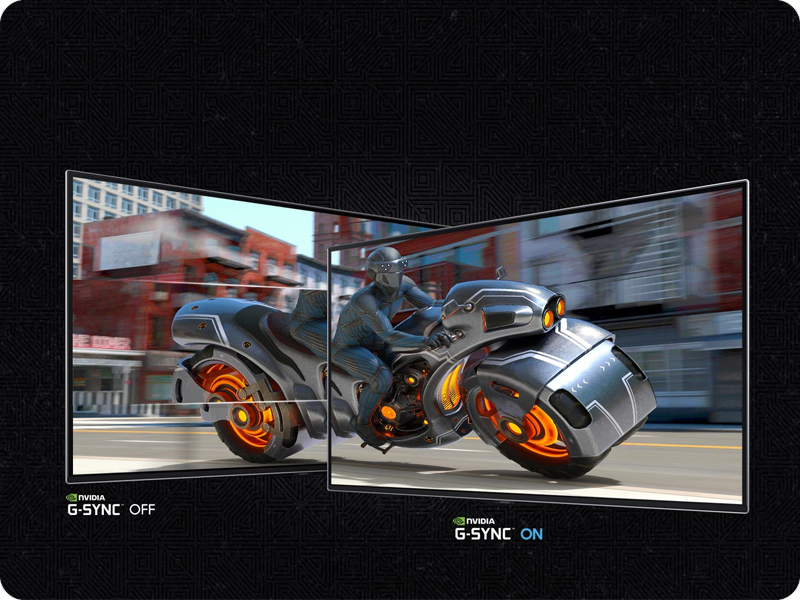 Zapomnij o efekcie rozdartej klatki, który negatywnie wpływa na Twoją precyzję i doświadczenia w grze. Dzięki obsłudze technologii NVIDIA G-SYNC każda rozgrywka będzie doskonale płynna. Funkcja ta polega na zgraniu pracy monitora z kartą graficzną dając Ci pewność, że nowa klatka jest wyświetlana na monitorze wtedy, kiedy wyrenderuje ją GPU.