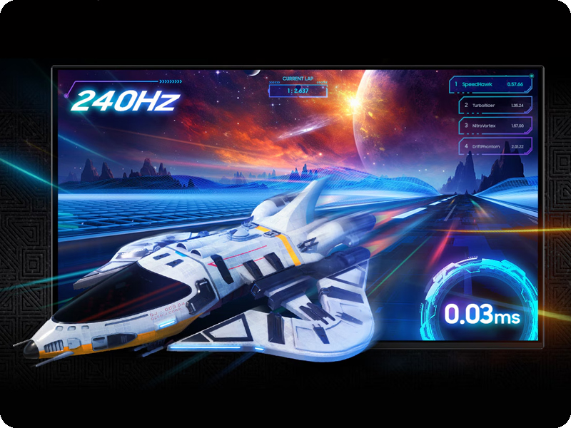 Odświeżanie na poziomie 240 Hz zapewnia niezwykłą płynność ruchu i brak rozmycia obrazu nawet przy bardzo szybkim tempie akcji. Czas reakcji 0,03 ms minimalizuje opóźnienia i efekt smużenia, co jest szczególnie ważne w grach fps i tytułach dynamicznych. Każdy ruch jest odwzorowany z chirurgiczną precyzją, dając przewagę nad przeciwnikami. Monitor spełni oczekiwania najbardziej wymagających użytkowników.