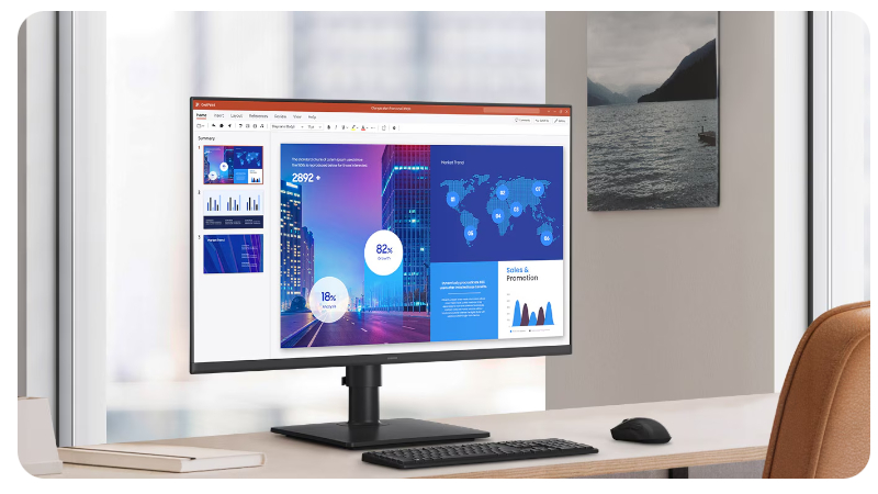 Monitor posiada funkcje, dzięki którym będziesz mógł dostosować go do własnych potrzeb. Dzięki regulacji położenia monitora możesz wybrać czy potrzebujesz, aby znajdował się on w pozycji poziomej, czy też Twoja praca wymaga pionowego położenia. Dodatkowo monitor Samsung posiada możliwość regulacji wysokości oraz kąta odchylenia, a także kąta obrotu. Teraz będziesz mógł pracować tak, jak tego potrzebujesz.