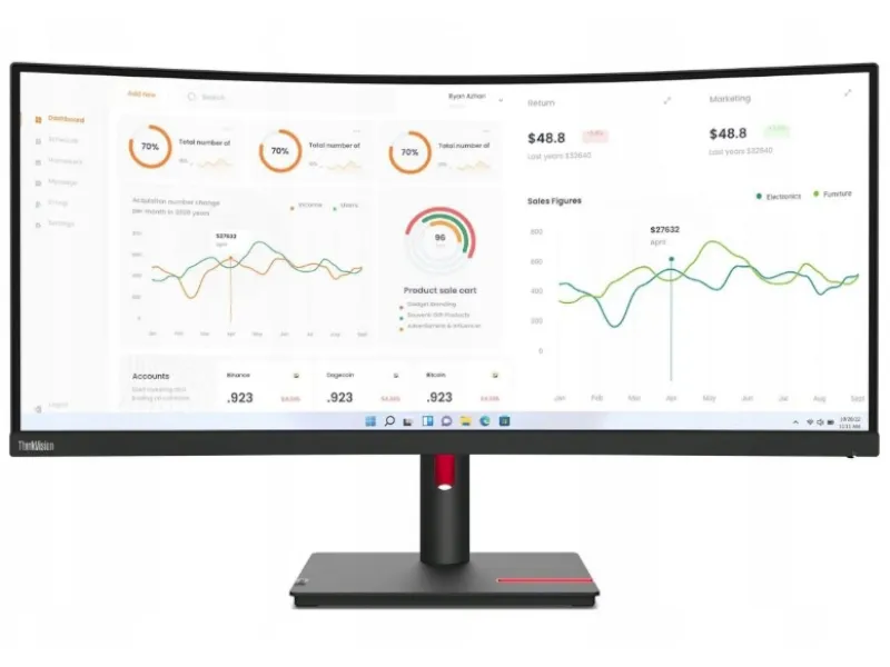 Monitor Lenovo ThikVision T34w-30 charakteryzuje się tym, że w jego konstrukcji wykorzystano zakrzywione panele o promieniu krzywizny 1500R. Taka wartość promienia krzywizny, jest nie tylko najbardziej komfortowa dla ludzkiego wzroku, ale również sprawia, że monitory te doskonale nadają się do szerokiej gamy zastosowań – począwszy od aplikacji ogólnego przeznaczenia, na gamingu skończywszy. Zakrzywione wyświetlacze pomagają też graczom podczas gry dosłownie zanurzyć się w wirtualnych światach, dzięki mają czemu mogą oni poczuć się tak, jakby rzeczywiście znajdowali się podczas rozgrywki w centrum akcji.