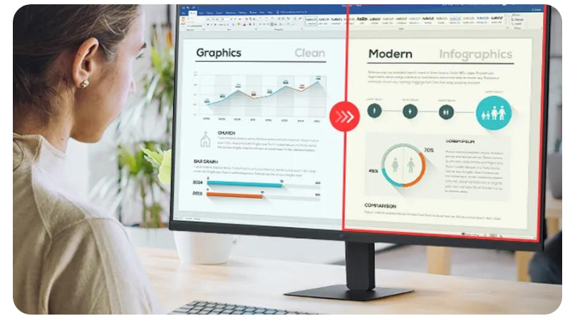 Monitor LG 32U631A-B to nie tylko sprzęt dla graczy – jego odświeżanie 100 Hz świetnie sprawdza się także w codziennej pracy. Wyższa częstotliwość odświeżania zapewnia płynne wczytywanie programów i przewijanie treści, minimalizując efekt zacinania oraz rozmycia ruchu. Dzięki temu praca staje się bardziej komfortowa i efektywna – niezależnie od tego, czy edytujesz dokumenty, korzystasz z wielu aplikacji jednocześnie, czy po prostu przeglądasz internet. To idealne połączenie produktywności i wygody w jednym monitorze.