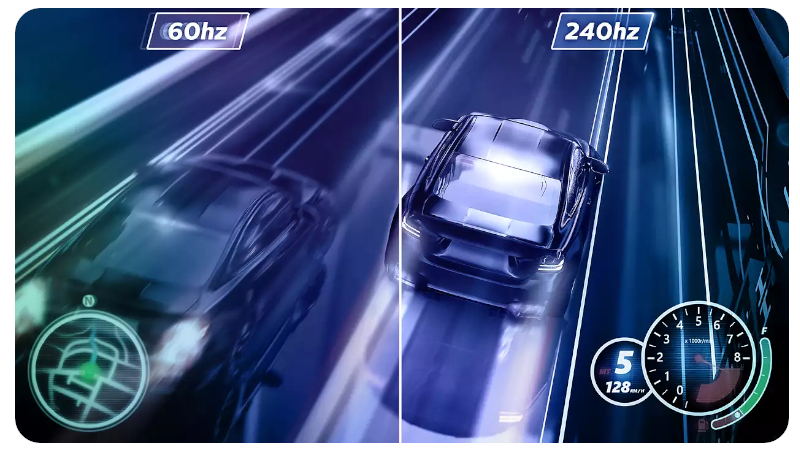 W trakcie grania w najbardziej wciągające gry akcji niezwykle wysoka częstotliwość odświeżania 240 Hz zapewnia niesamowicie płynne, pozbawione opóźnień wrażenia. Ten monitor Philips odświeża obraz nawet 240 razy na sekundę, czyli znacznie częściej niż standardowe monitory. Częstotliwość odświeżania 240 Hz zapewnia doskonałą płynność ruchu i wyrazistość obrazu, co jest szczególnie ważne w przypadku dynamicznych gier, takich jak gry FPS i gry wyścigowe. Dzięki monitorowi Philips o częstotliwości odświeżania 240 Hz sceny akcji w grach są pozbawione migotania i zjawiska powidoku. Ten monitor umożliwia głębsze zanurzenie się w świecie gry i bardzo realistyczną rozgrywkę.