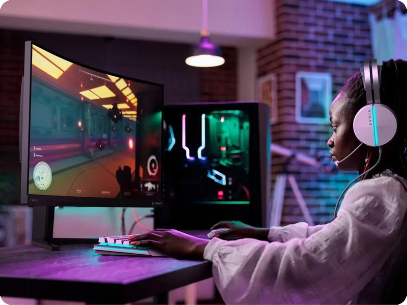 Philips Envia 32M2C5500W zachwyca rozdzielczością 2560 x 1440 (WQHD), która dostarcza wyjątkowo wyraźny obraz pełen detali. Jego 31,5-calowa przekątna zapewnia imponująco duże pole widzenia idealne do pracy i rozrywki. Matowa powłoka matrycy VA minimalizuje refleksy, gwarantując komfort nawet przy silnym oświetleniu. Zakrzywienie 1000R otacza użytkownika obrazem, intensyfikując wrażenia wizualne podczas filmów i gier. Dzięki konstrukcji bezramkowej monitor prezentuje się nowocześnie i zwiększa immersję.