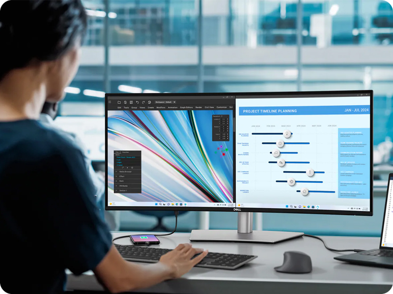 Bez względu na to, czy korzystasz z tego monitora w biurze, czy w domu, wardo zadbać o komfort swoich oczu. Ekran monitora Dell U3425WE nie tylko gwarantuje wystarczającą przestrzeń roboczą do wygodnej pracy, ale również posiada wysoką rozdzielczość. Dzięki temu doskonale sprawdzi się podczas pracy z arkuszami kalkulacyjnymi oraz podczas oglądania filmów. Dodatkowo nowoczesna konstrukcja urządzenia stanowi elegancki uzupełnienie każdego nowoczesnego stanowiska pracy.
