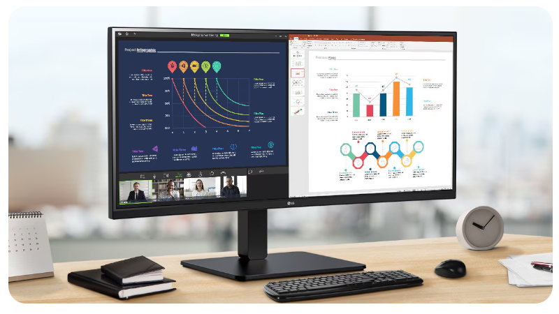 Z monitorem LG UltraWide 34BA75QE-B zyskujesz więcej przestrzeni do działania i pełną swobodę w pracy oraz rozrywce. Panoramiczny ekran 21:9 sprawia, że wielozadaniowość staje się naturalna – bez potrzeby przełączania okien. To idealne rozwiązanie dla twórców, analityków i graczy, którzy cenią wygodę, produktywność i szeroką perspektywę. Pracuj szybciej, twórz efektywniej i graj z przewagą!
