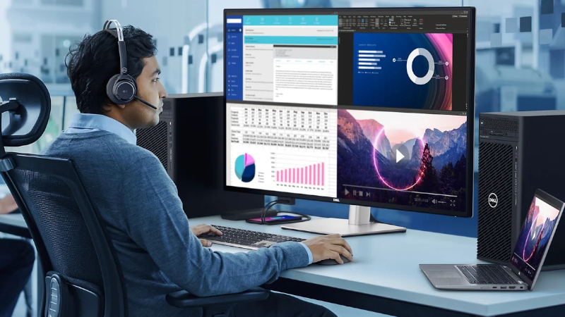 Możliwość obracania, pochylania oraz ustawienia monitora na idealnej wysokości pozwala na wygodną konfigurację do codziennej pracy. Dodatkowo dwa zintegrowane głośniki o mocy 8 W gwarantuja czysty dźwięk, a funkcja ComfortView Plus redukuje promienie światła niebieskiego i zapewnia doskonałe odwzorowanie kolorów.