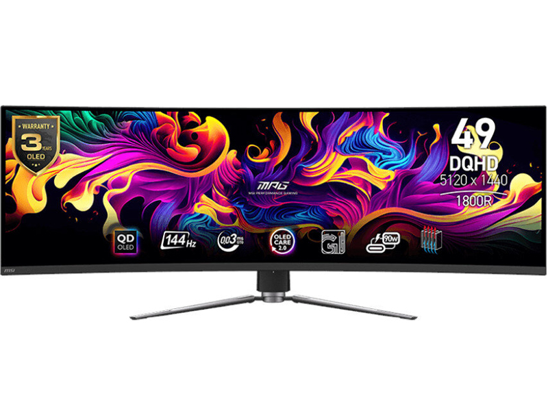 Monitor 49" MSI MPG 491CQP QD-OLED | 5120x1440 (DUAL-QHD) | 0,03ms | 144 Hz | 32:9 | HDR 400 TrueBlack |1800R