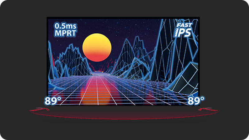 Matryca Fast IPS nie tylko zapewnia wierne odwzorowanie scen z pola bitwy i wyjątkową dokładność kolorów, ale także niesamowity czas reakcji na ruchomy obraz (MPRT) wynoszący 0.5 ms. Dzięki zastosowanej technologii, będziesz mógł uwolnić swój cały potencjał gracza, a żadna rozgrywka nie będzie już dla Ciebie problemem.