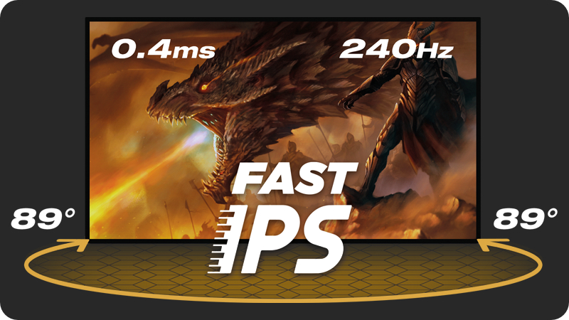 Matryca Fast IPS nie tylko zapewnia wierne odwzorowanie scen z pola bitwy i wyjątkową dokładność kolorów, ale także niesamowity czas reakcji na ruchomy obraz (MPRT) wynoszący 0.4 ms. Dzięki zastosowanej technologii, będziesz mógł uwolnić swój cały potencjał gracza, a żadna rozgrywka nie będzie już dla Ciebie problemem. Częstotliwość odświeżania obrazu na poziomie 240 Hz oznacza jeszcze płynniejszą rozgrywkę, oraz daje Ci przewagę nad przeciwnikami, pozwalając Ci jeszcze dokładniej śledzić ich ruchy.
