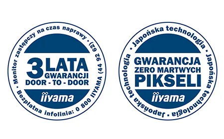 iiama jest pewna jakości swoich produktów do tego stopnia, że nie boi się przyznać extra gwarancji na swoje panele. Dzięki 30-dniowej gwarancji "zero martwych pixeli" natychmiastowo i bezpłatnie wymienisz swój sprzęt w systemie door-to-door. Celem iiyama jest zadowolenie każdego klienta, dlatego transakcja nie kończy isę na sprzedaży urządzenia. Serwis i wsparcie techniczne jest co najmniej równie wazne, dlatego producent na każdy monitor i panel LCD udziela 3 letniej gwarancji w systemie door-to-door.