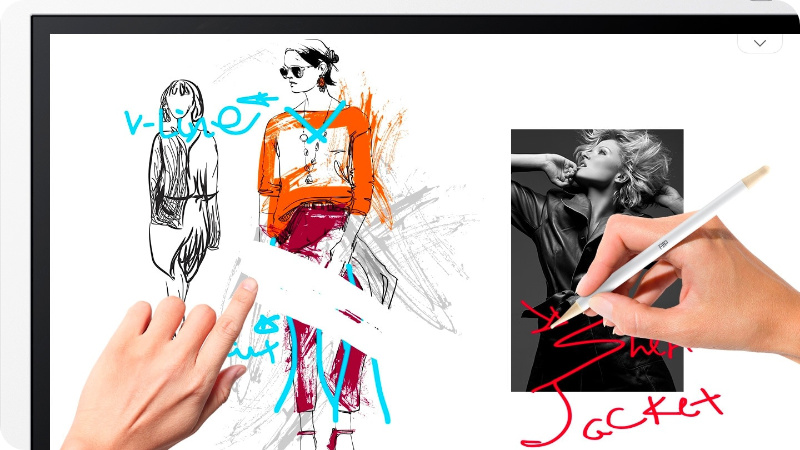 Ciesz się płynnym pisaniem odręcznym w uniwersalnym formacie cyfrowym, z szeroką gamą kolorów, stylów i grubości. Na urządzeniu mogą pisać nawet cztery osoby jednocześnie, wykorzystując do pisania pasywny rysik. Pomyliłeś się? Możesz szybko usuwać notatki lub rysunki przez szybkie przeciągnięcie palcem lub dłonią.