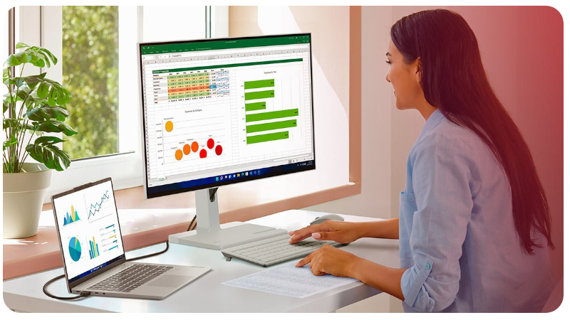 Monitor Lenovo L27q-4A został stworzony z myślą o maksymalnym komforcie i elastyczności użytkowania. Dzięki szerokim możliwościom regulacji – pochyleniu ekranu (-5° / 22°), pełnemu obrotowi (360°), regulacji wysokości do 150 mm oraz pivotowi o 90° – z łatwością dopasujesz jego pozycję do własnych potrzeb. Tryb pionowy idealnie sprawdzi się podczas pracy z dokumentami, kodowaniem czy przeglądania stron internetowych. Dodatkowo, kompatybilność z uchwytami VESA umożliwia prosty montaż na ścianie lub ramieniu, tworząc ergonomiczne, przestronne i estetyczne stanowisko pracy. To rozwiązanie, które łączy funkcjonalność, komfort i nowoczesny styl.