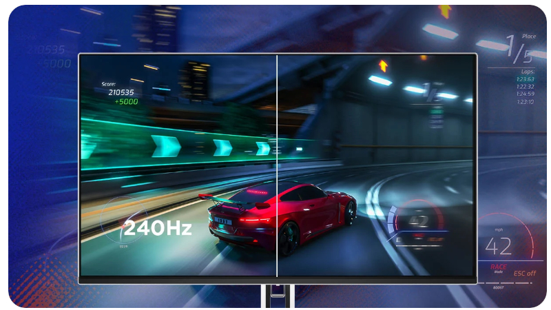 Dzięki częstotliwości odświeżania 240 Hz każda klatka pojawia się z oszałamiającą płynnością, dając Ci natychmiastową reakcję na zmieniającą się sytuację w grze. To przewaga, którą poczujesz od pierwszej sekundy – szybciej zauważysz przeciwnika, szybciej zareagujesz i szybciej zwyciężysz. Ekstremalnie niski czas reakcji 0,03 ms całkowicie eliminuje efekt ghostingu oraz rozmycia ruchu. Dynamiczne starcia, gwałtowne zwroty akcji i szybki ruch kamery pozostają ostre jak brzytwa, dzięki czemu nic nie umknie Twojemu oku nawet w najbardziej intensywnych momentach walki.