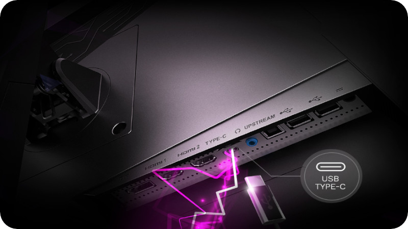 Ten gamingowy monitor z serii MSI Optix wyposażony jest w złącze USB Type-C, które pozwala nie tylko na podłączenie dowolnego urządzenia, ale również na ich bezproblemowe zasilanie (do 15W).