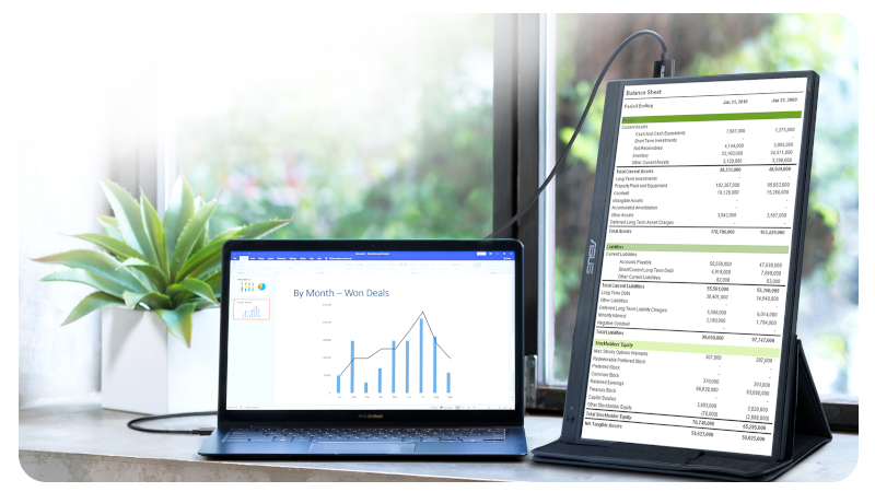 Wyrazisty obraz i żywe kolory niezależnie od kąta patrzenia z monitorem ASUS ZenScreen MB165B. Urządzenie doskonale sprawdzi się w biurze oraz podczas domowych seansów filmowych. Jego smukły profil idealnie dopasuje się do każdego miejsca, a niemalże bezramkowa konstrukcja pozwoli wypełnić cały wyświetlacz obrazem od krawędzi do krawędzi.