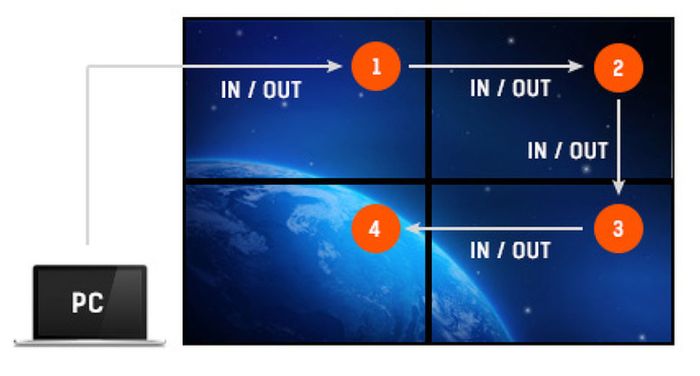 Daisy chain to łańcuchowe połączenie umożliwiające połączenie kilku ekranów razem. Główną jego zaletą jest prostota ponieważ, kolejne ekrany dołączane są do następnych za pośrednictwem łącza DisplayPort lub HDMI bez konieczności łączenia każdego ekranu z każdym. Łańcuch z łatwością można więc powiększać o kolejne ogniwa aż do określonego maksimum.