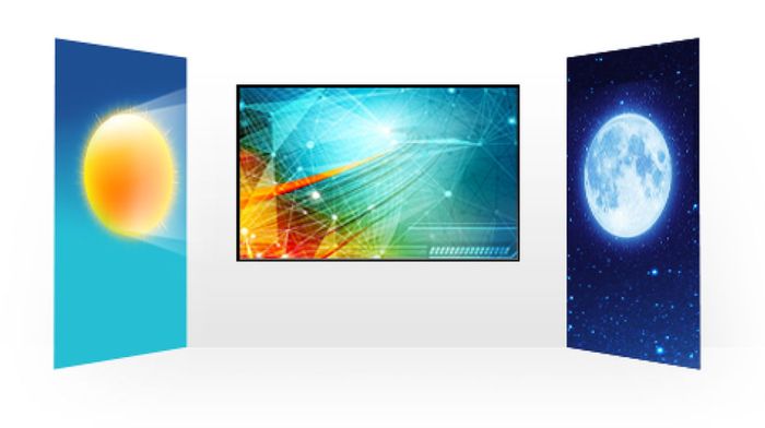 Wyświetlacz sam dostosowuje podświetlenie ekranu do zmieniających się warunków zewnętrznych, dzięki czemu obraz jest zawsze jasny i klarowny. Sterowanie przez LAN oznacza, możliwość kontrolowania i zmiany ustawień w menu OSD przy pomocy interfejsu opartego o przeglądarkę WWW (tylko seria 64) lub wysyłając polecenia sterujące (serie 64 i 80).